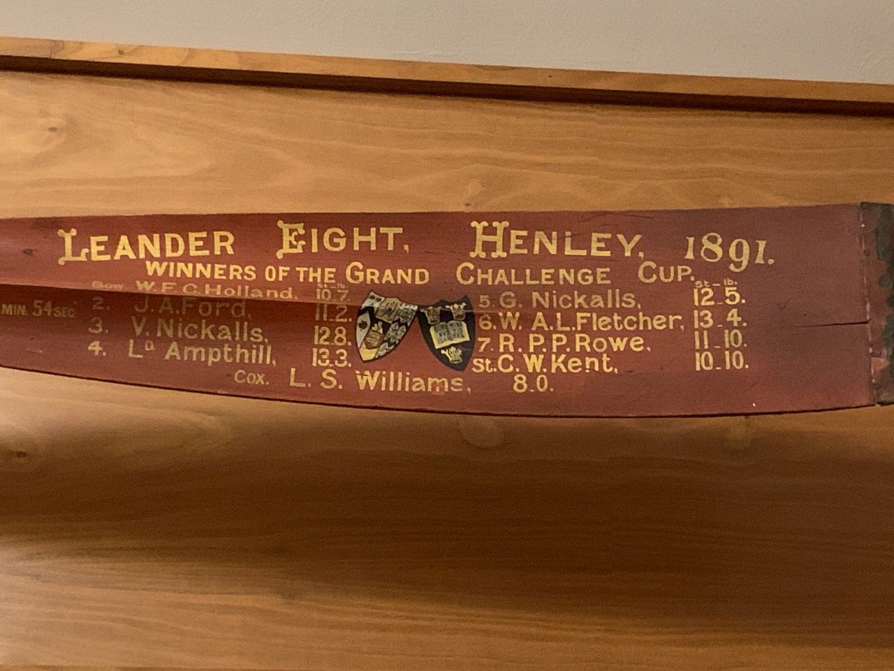 I have been given my first historic trophy oar commission. I have been asked to replicate this 1891 Leander Club trophy oar commemorating the club’s win in the Grand at Henley Royal Regatta that year.