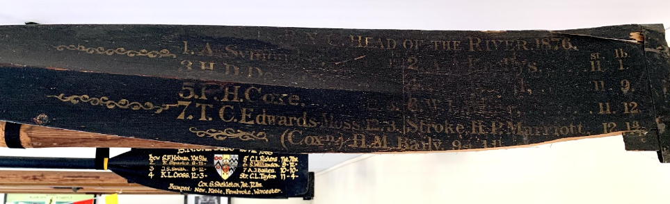 Over 150 years ago, winning rowing crews at Oxford and Cambridge universities began painting their oars - and sometimes their rudders - with the names of their crews and the university or college coat of arms to create individual and unique trophies to commemorate their victories. The custom soon spread beyond the universities to the great rowing clubs of the time, Leander, Thames Rowing Club, London Rowing Club and others.
